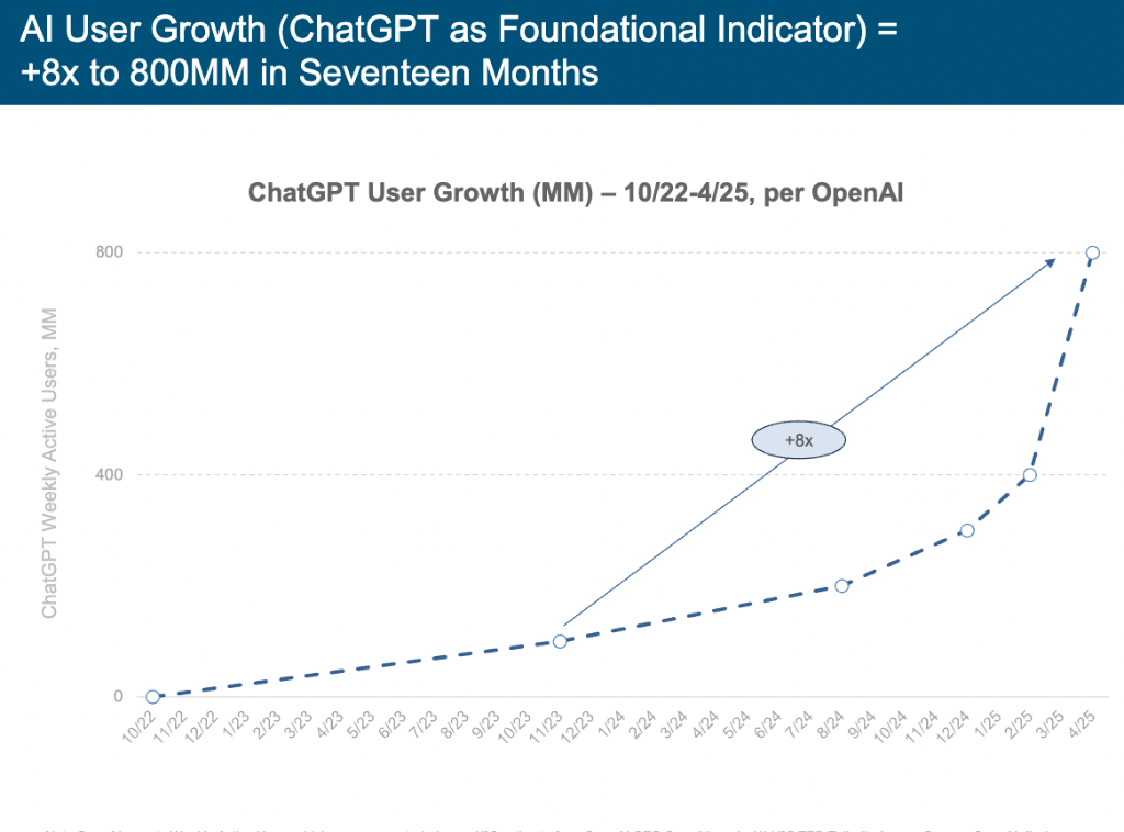 玛丽·米克尔 Mary Meeker团队编撰的《人工智能趋向演讲》中51次利用史无前例(unprecedented)”一词,它将引领我们进入一个充满机缘取挑和的新时代。谷歌 TPU 和亚马逊 Trainium 的大规模开辟,本年,ChatGPT曾正在 17 个月内狂揽8亿用户,中国AI大模子正以惊人速度逃逐并鲸吞市场份额。以智能体为核心的体验将现有互联网手艺品级,仍是会有新的力量脱颖而出。